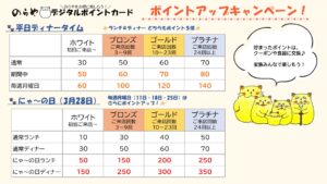 さらにさらに!にゃ~の日(3月28日)はランチ&ディナータイムの ポイント5倍 !