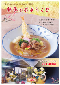 謹賀新年 月別アーカイブ 2025年12月 2025年10月 2025年9月 2025年7月 2025年6月 2025年3月 2025年2月 2024年12月 2024年10月 2024年9月 2024年8月 2024年7月 2024年6月 2024年5月 2024年4月 2024年3月 2024年1月 2023年12月 2023年11月 2023年10月 2023年9月 2023年8月 2023年7月 2023年6月 2023年5月 2023年4月 2023年3月 2023年2月 2023年1月 2022年12月 2022年11月 2022年10月 2022年9月 2022年8月 2022年7月 2022年5月 2022年4月 2022年3月 2022年2月 2022年1月 2021年11月 2021年10月 2021年9月 2021年8月 2021年7月 2021年6月 2021年5月 2021年4月 2021年3月 2021年2月 2021年1月 2020年12月 2020年11月 2020年10月 2020年9月 2020年8月 2020年7月 2020年6月 2020年5月 2020年4月 2020年3月 2020年2月 2020年1月 2019年12月 2019年11月 2019年9月 2019年8月 2019年7月 2019年6月 2019年5月 2019年4月 2022.01.01 あけましておめでとうございます。 いつものらやをご愛顧いただきありがとうございます。 今年も何卒よろしくお願い致します。 1月4日まで新春限定の『のらやごちそううどん』 全店でお楽しみいただけます。 のらやはじめはこのおうどんで決まり! « 前へ一覧へ 次へ »