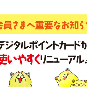 お知らせ一覧INFORMATION 月別アーカイブ 2025年12月 2025年10月 2025年9月 2025年7月 2025年6月 2025年3月 2025年2月 2024年12月 2024年10月 2024年9月 2024年8月 2024年7月 2024年6月 2024年5月 2024年4月 2024年3月 2024年1月 2023年12月 2023年11月 2023年10月 2023年9月 2023年8月 2023年7月 2023年6月 2023年5月 2023年4月 2023年3月 2023年2月 2023年1月 2022年12月 2022年11月 2022年10月 2022年9月 2022年8月 2022年7月 2022年5月 2022年4月 2022年3月 2022年2月 2022年1月 2021年11月 2021年10月 2021年9月 2021年8月 2021年7月 2021年6月 2021年5月 2021年4月 2021年3月 2021年2月 2021年1月 2020年12月 2020年11月 2020年10月 2020年9月 2020年8月 2020年7月 2020年6月 2020年5月 2020年4月 2020年3月 2020年2月 2020年1月 2019年12月 2019年11月 2019年9月 2019年8月 2019年7月 2019年6月 2019年5月 2019年4月 2025.12.06 2026年福袋に関して 2025.09.01 【重要】デジタルポイント会員様へ アプリリニューアルのお知らせ 2025.10.20 オンラインショップメンテナンスのお知らせ(2025/10/27 16:00更新) 2025.10.14 打田店 臨時休業のお知らせ 2025.09.28 ミニのらちゃん3日間限定販売! 2025.09.01 10月の営業時間変更と休業のお知らせ 2025.07.28 【発売に先がけて】ミニのらちゃん10匹の飼い主様を探しています【2025年8月8日~17日】 2025.07.14 2025年8月の営業時間・8/12休業のお知らせ 1 / 2412...1020...»»