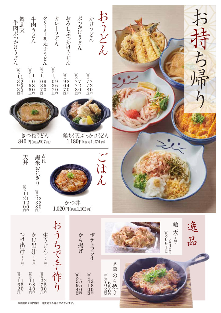 ・うどんの食べ放題は90分制、お席は120分制とさせていただきます。