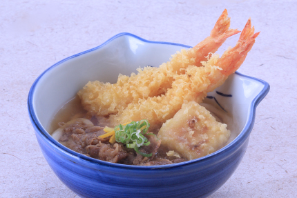 海老天牛肉ぶっかけうどん
