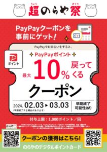 PayPayでのお支払い でご利用いただける 10%ポイント還元クーポン をご用意いたしました。