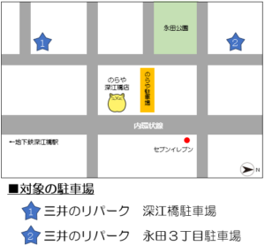 ★対象の駐車場:①「三井のリパーク 深江橋」②「三井のリパーク 永田3丁目」の2ヶ所